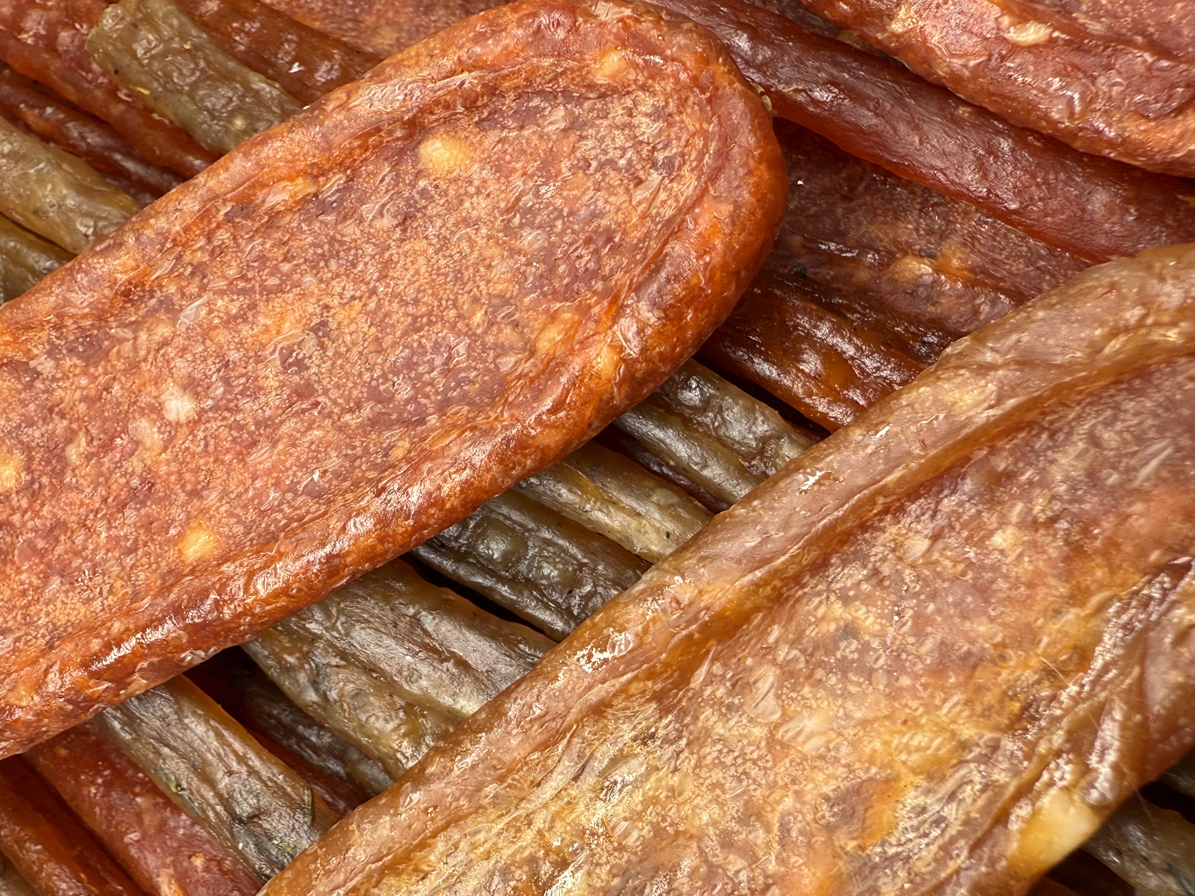 Ніжне м’ясо курятини, висушене за спеціальною технологією, щоб зберегти природну соковитість і насичений смак. Це асорті — поєднання кількох видів курячих ковбасок із різними спеціями: від класичних солонувато-пряних до ароматних із гостринкою.