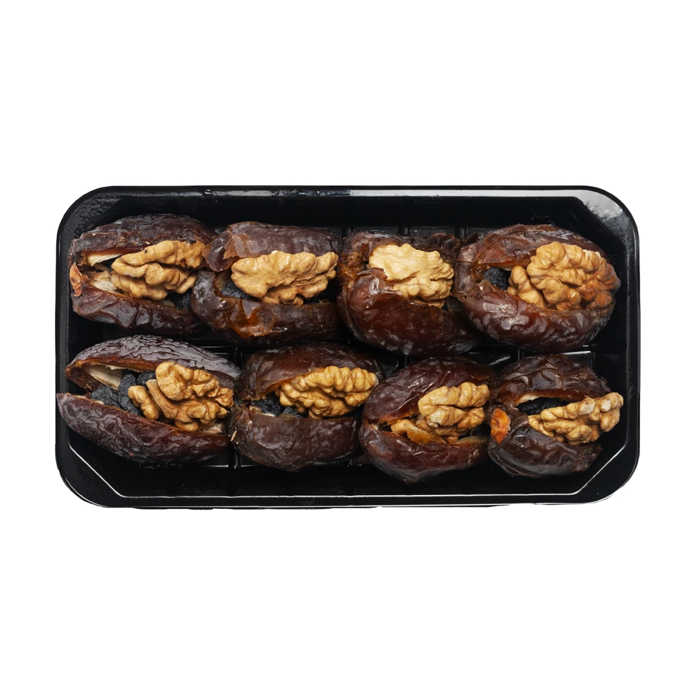 Хаштак — це вишуканий десерт, що поєднує натуральні фініки, наповнені хрусткими волоськими горіхами та соковитими родзинками. Без додавання цукру та консервантів, цей смаколик зберігає природну солодкість та користь своїх інгредієнтів. Ідеальний вибір для тих, хто цінує здорові та смачні ласощі.