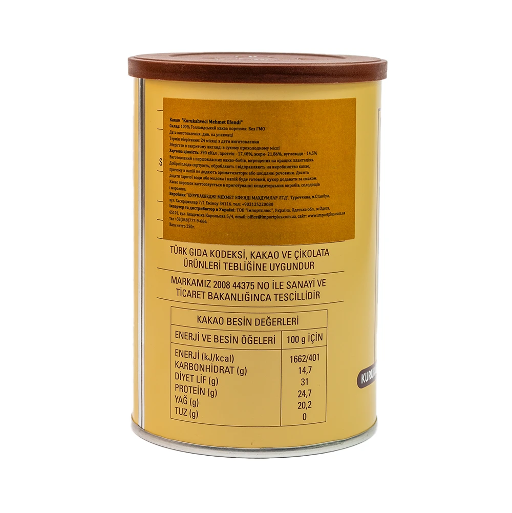 Какао порошок Mehmet Efendi — це 100% натуральний продукт.