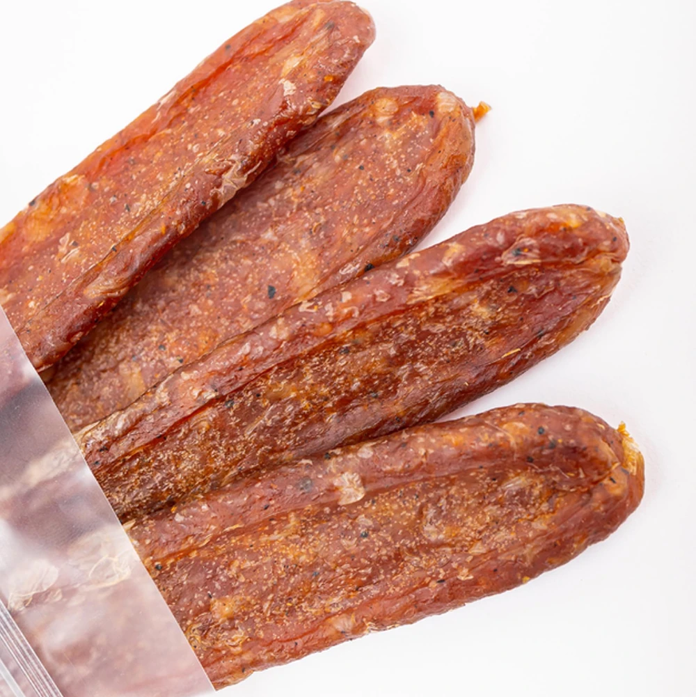 В’ялені палички з чудовим балансом солодкої паприки, чорного перцю і легкої гостроти. Ідеальні до пива, вина або як білкова закуска в будь-який час. Наповнені смаковими нотками диму та спецій — справжнє гастрономічне натхнення для гурманів!