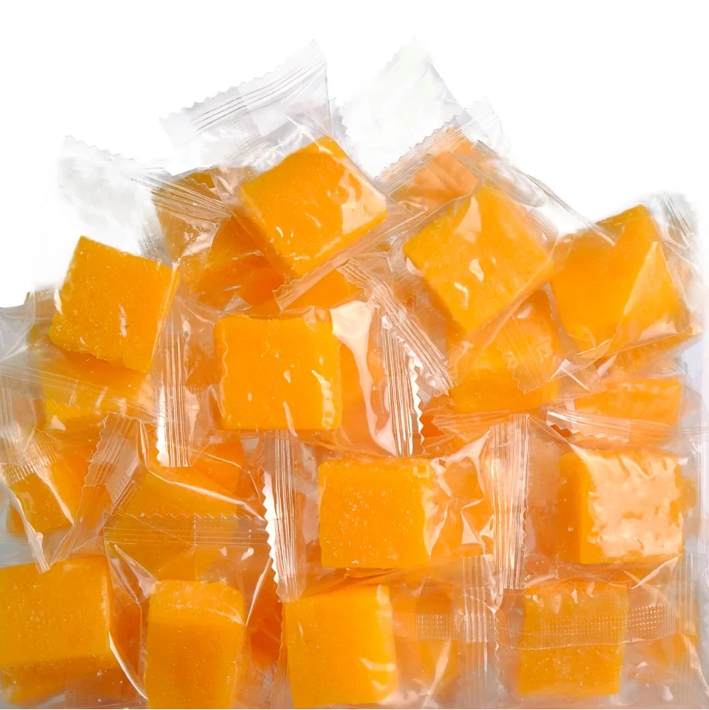 Манго мармеладки — це чудовий десерт, який втілює смак стиглого тропічного манго у ніжній текстурі солодких кубиків. Виготовлені з натуральних інгредієнтів, ці мармеладки зберігають яскравий фруктовий аромат і додають яскравого настрою до ваших перекусів.