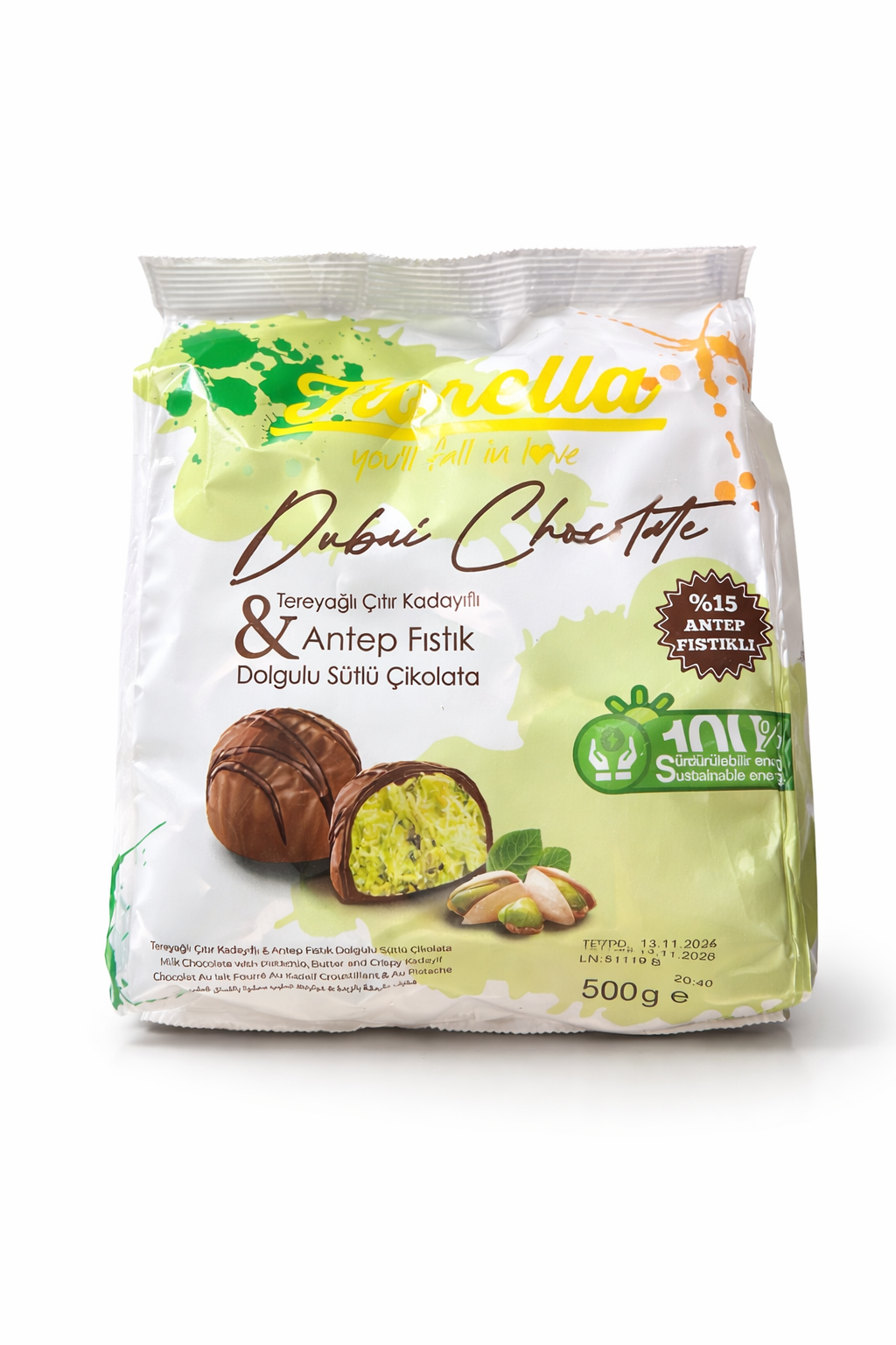 Цукерки Fiorella Dubai Chocolate — це преміальні шоколадні цукерки з ніжного молочного шоколаду з насиченою фісташковою начинкою та хрустким кадаїфом. Вони поєднують у собі східні традиції та сучасний десертний формат, створюючи унікальний смак і текстуру.